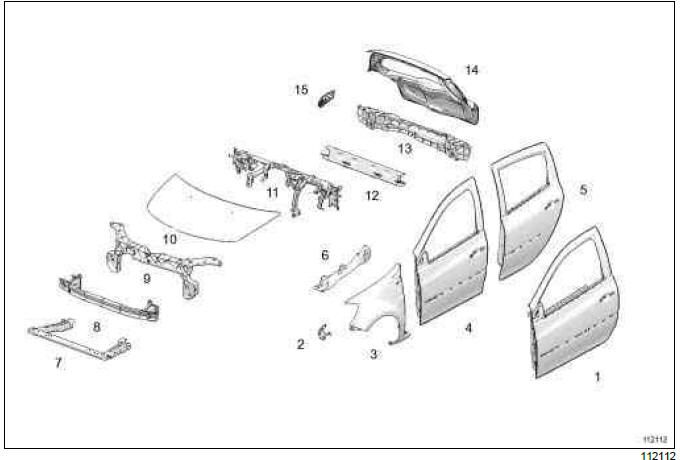 Note: If it is suspected that one of these points may be deformed, use two additional points located in an area not affected by the impact in order to confirm trim-setting.